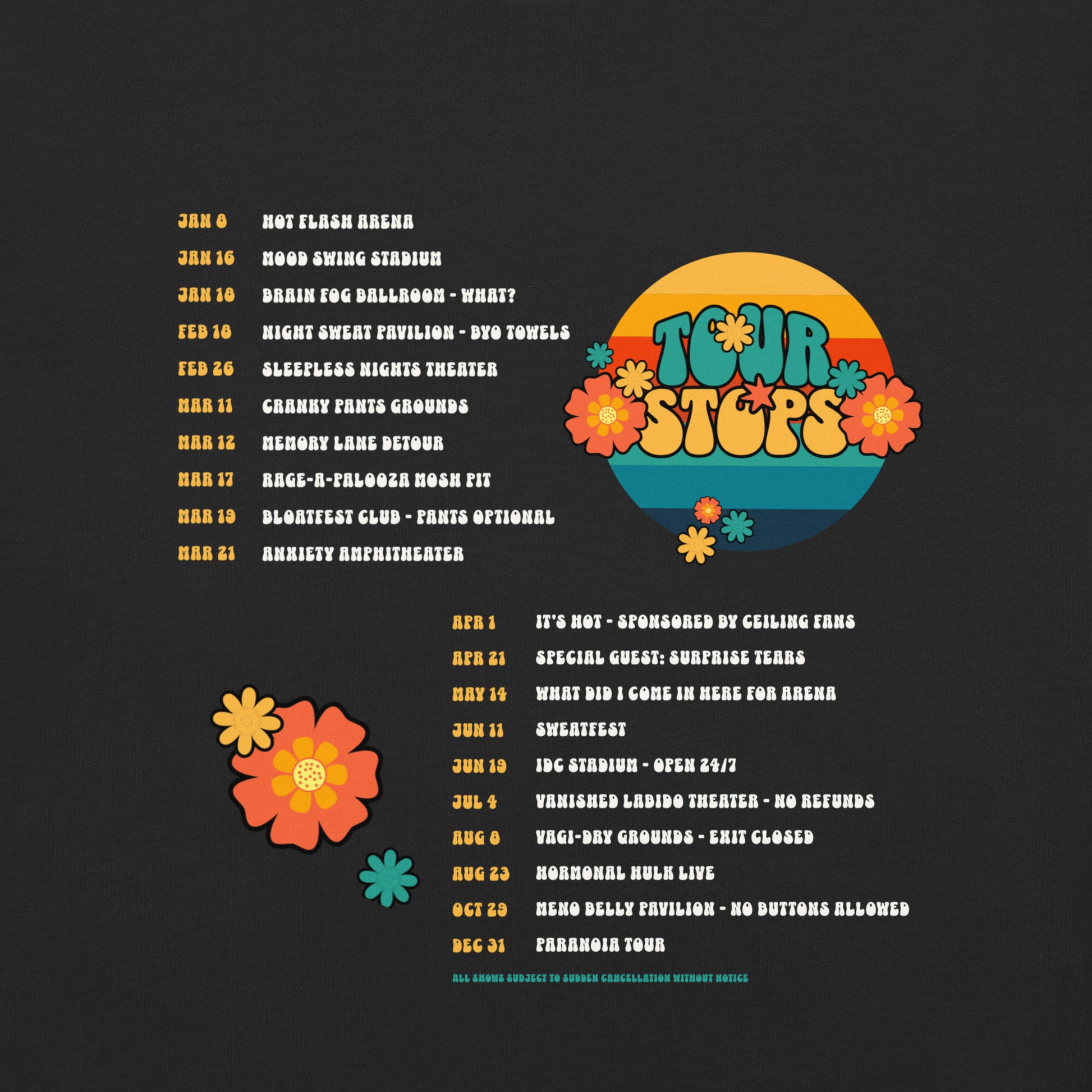 Congratulations, you found the Hippie Pause Tee. It’s soft, it’s black, and it’s covered in flower-power energy. Wear it to a music festival, or just the grocery store when you want to give off peace and love.